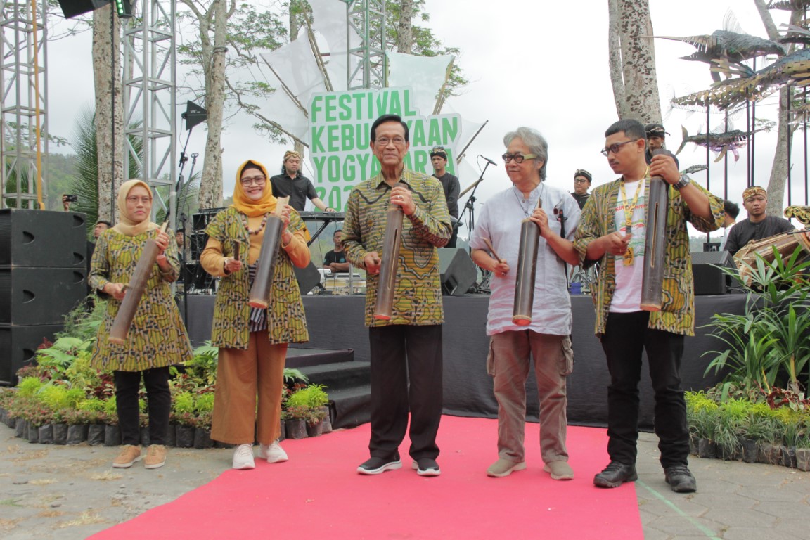 Prosesi pembukaan FKY 2023 secara simbolis dibuka dengan pemukulan kenthongan yang dilakukan oleh Sri Sultan Hamengkubuwana X dengan didampingi oleh ketua FKY 2023 B. M. Anggana, Kepala Dinas Kebudayaan DIY Dian Lakshmi dan perwakilan Steering Committee (SC) Butet Kartaredjasa.