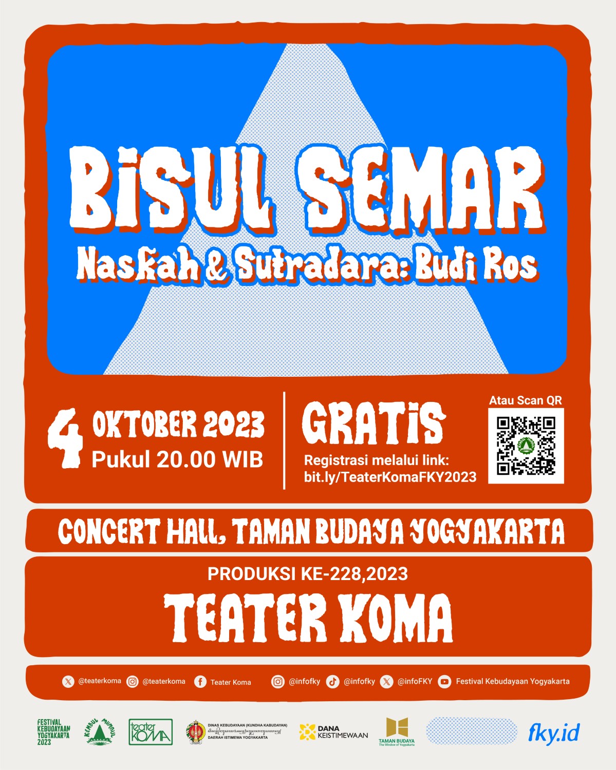 Festival Kebudayaan Yogyakarta (FKY) 2023 menghadirkan Teater Koma dalam program Pertunjukan FKY di tahun ini. Pementasan yang akan berlangsung pada 4 Oktober 2023 ini akan bertempat di Concert Hall Taman Budaya Yogyakarta. Dengan judul ‘Bisul Semar’, Teater Koma akan mengangkat isu dan problema masa kini lewat sajian drama teater yang menarik.